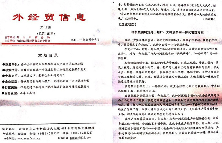 《外經(jīng)貿(mào)信息》2013第12期:揚帆集團制定舟山船